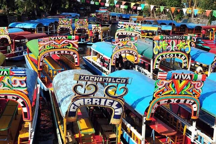- then you will take ride in a colorful trajinera (flat-bottomed boats)